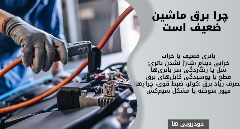 نکته: برخی خودروها حتی با باتری سالم، به دلیل خرابی دینام، مشکل ضعف برق دارند.