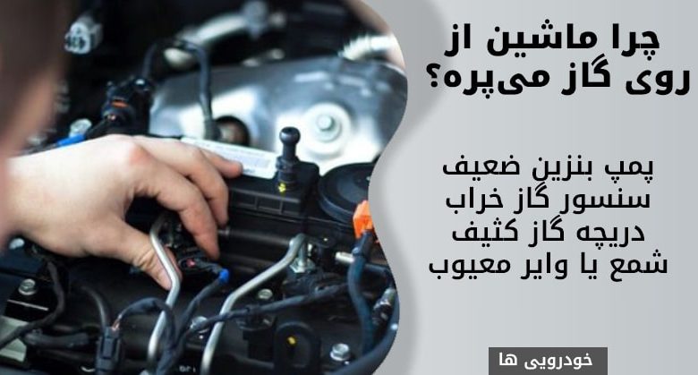 ماشین از روی گاز میپره چون یکی از سه چیز درست کار نمیکنه: بنزین، هوا یا جرقه.